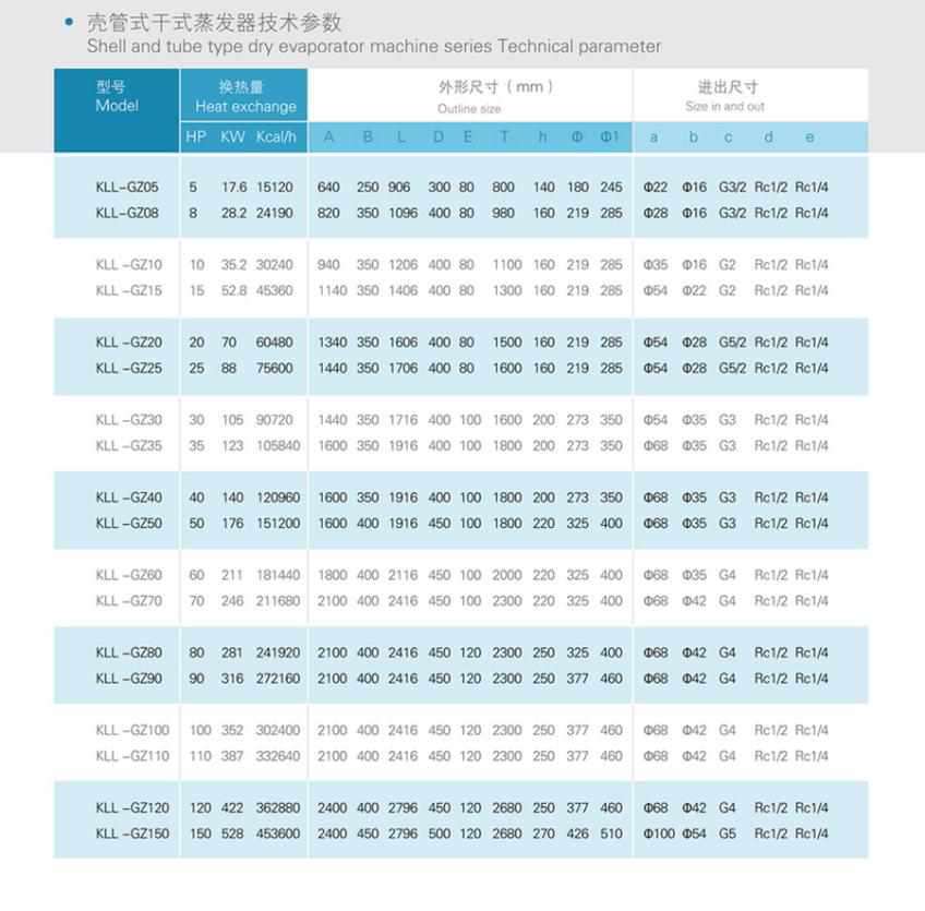殼管式幹式蒸發器